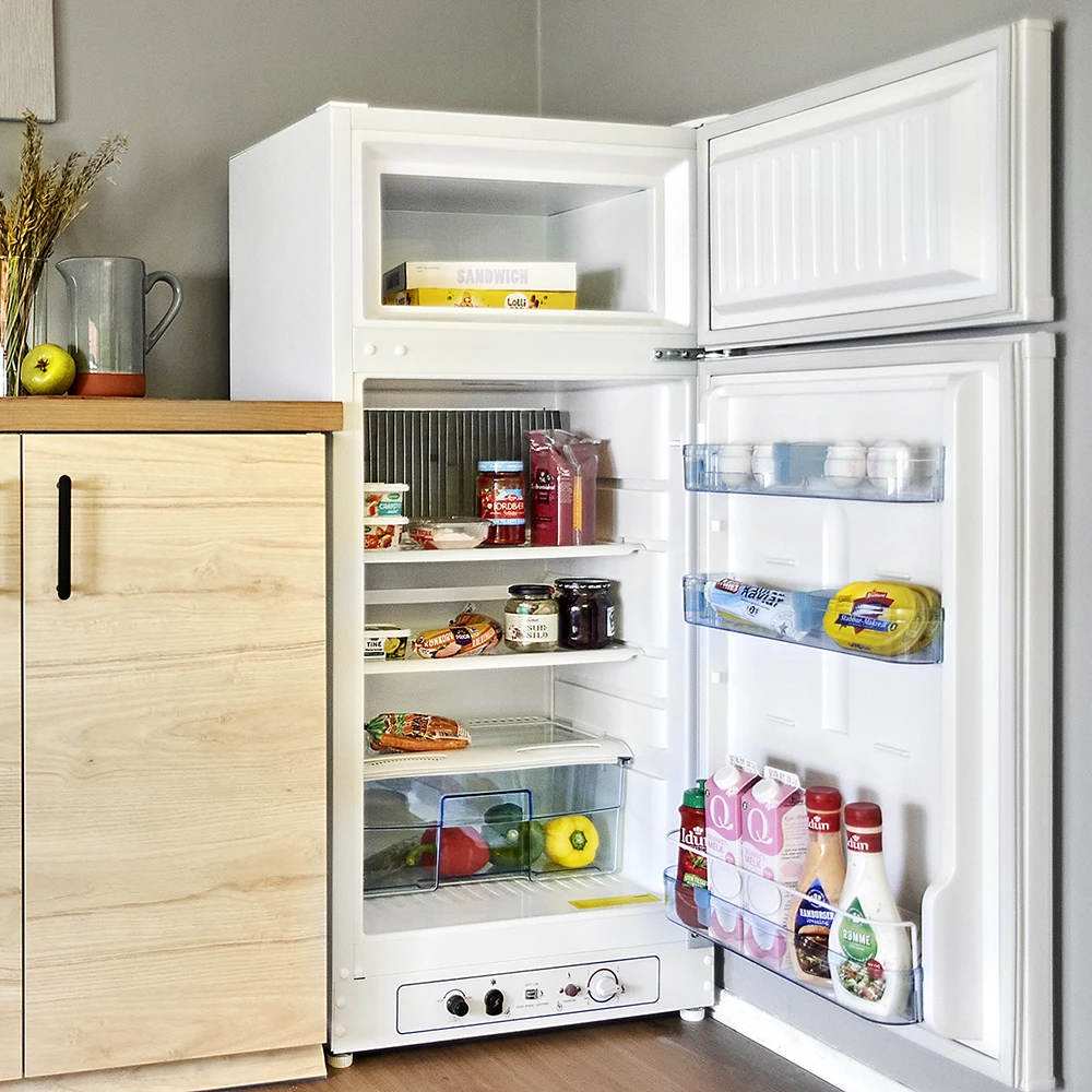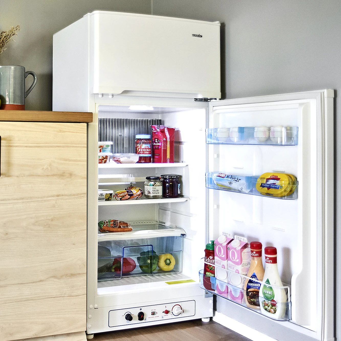 Ventus 168 i hvit er et praktisk gasskjøleskap egnet for deg som har behov for stor kjøleplass og en liten fryser. Med hele 129 liters kjøledel og 25 liters fryser rommer skapet nok mat til hele familien på hytta.