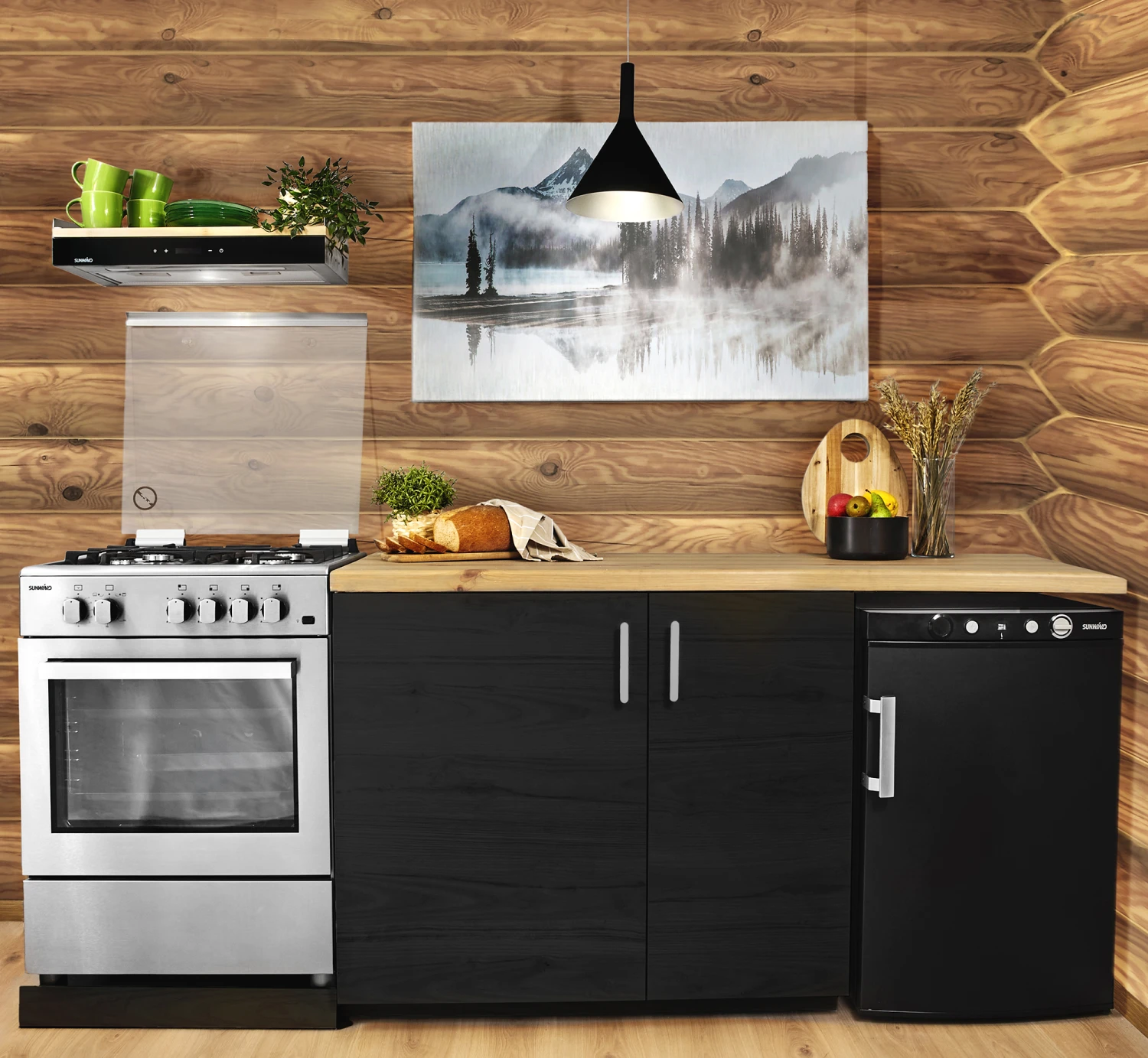 Med gasskomfyr Kitchen Steel 60 x 60 cm får du hjemmekomfort på hyttekjøkkenet. Kitchen Steel kommer i en lekker, matt rustfri finish, og har støpejernsrister, glasslokk, grillelement, 12V tenning og lys.
