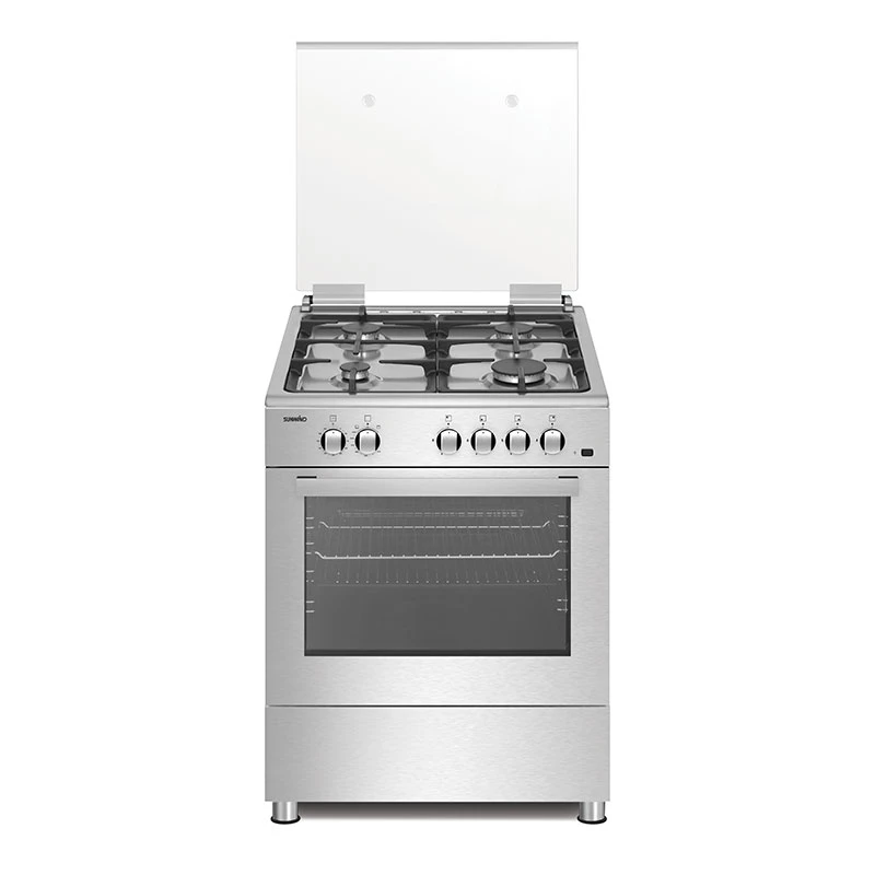 Gasskomfyren er utstyrt med et grillelement som gir deg mulighet til å veksle mellom over- og undervarme i stekeovnen. Stekeovnsdøren har to lag glass som sørger for at stekeovnsdøren ikke blir særlig varm til tross for at stekeovnskammeret har en høy temperatur.
