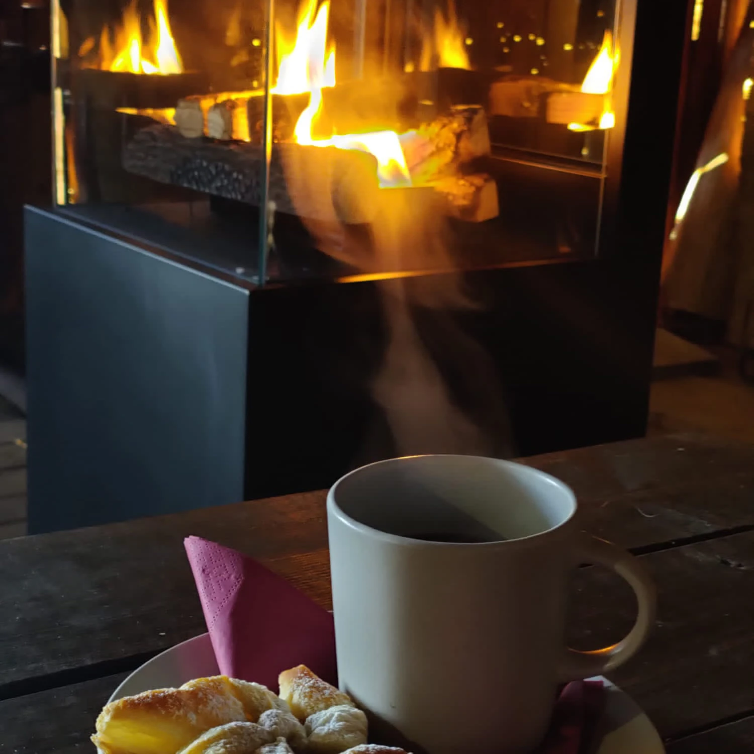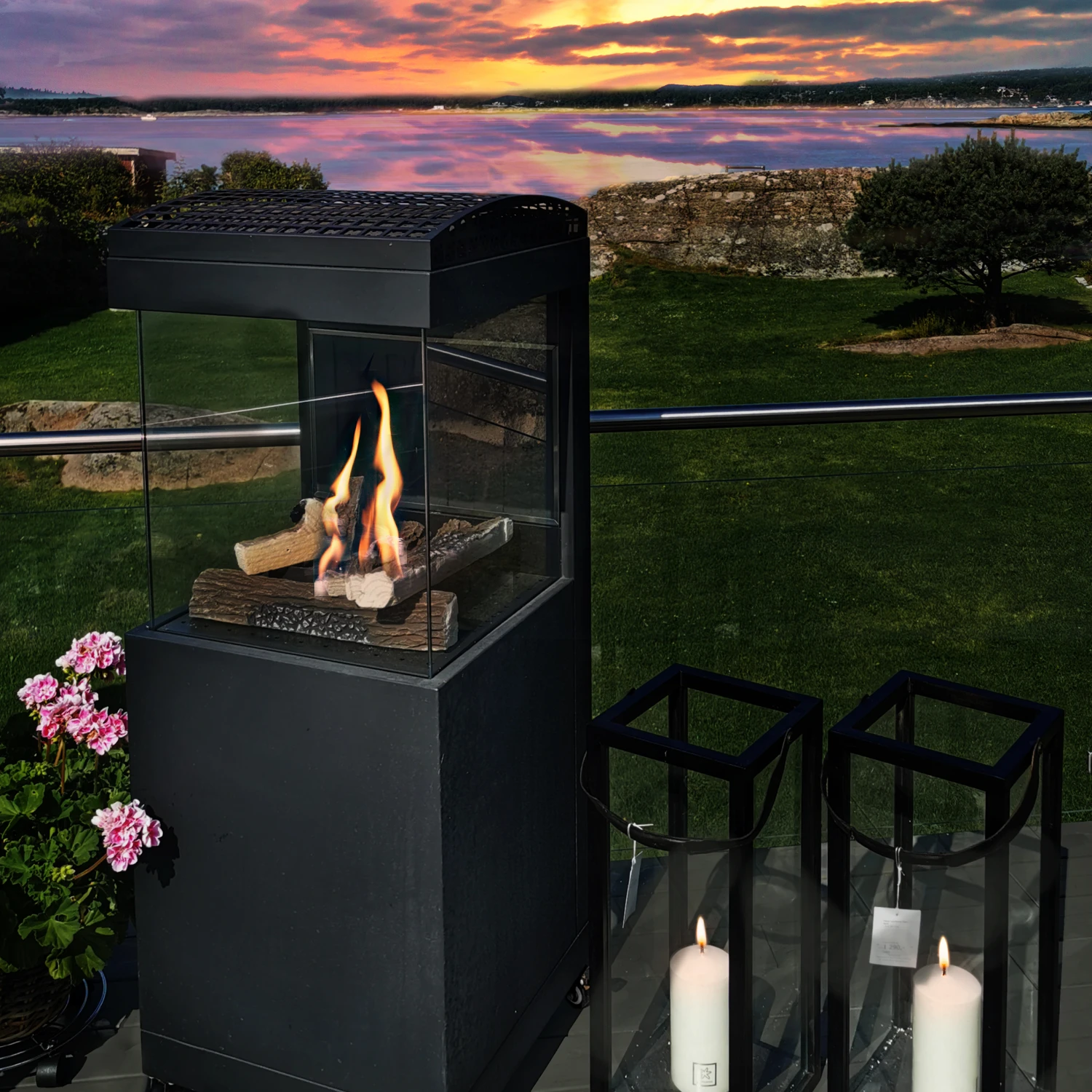 I tillegg til et koselig flammebilde gir peisen en deilig og høy varmeeffekt. Peisen har fire hjul og et håndtak i bakkant som gjør den enkel å flytte. Glasset er temperert og peisen er i meget god kvalitet. Ett sett keramiske kubber for hyggelig stemning medfølger. Det er plass til gassflasken i skapet under peisen.