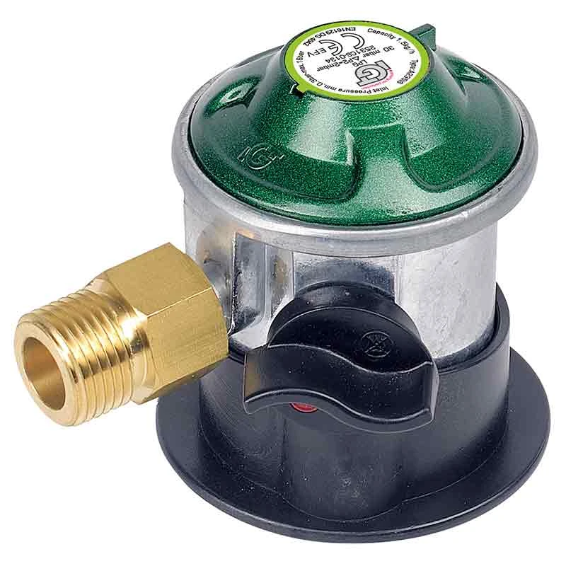 Gassregulator (husholdning) 30 mbar med skrutilkobling 1/2″ for bruk med vedlikeholdsfri gasslange.