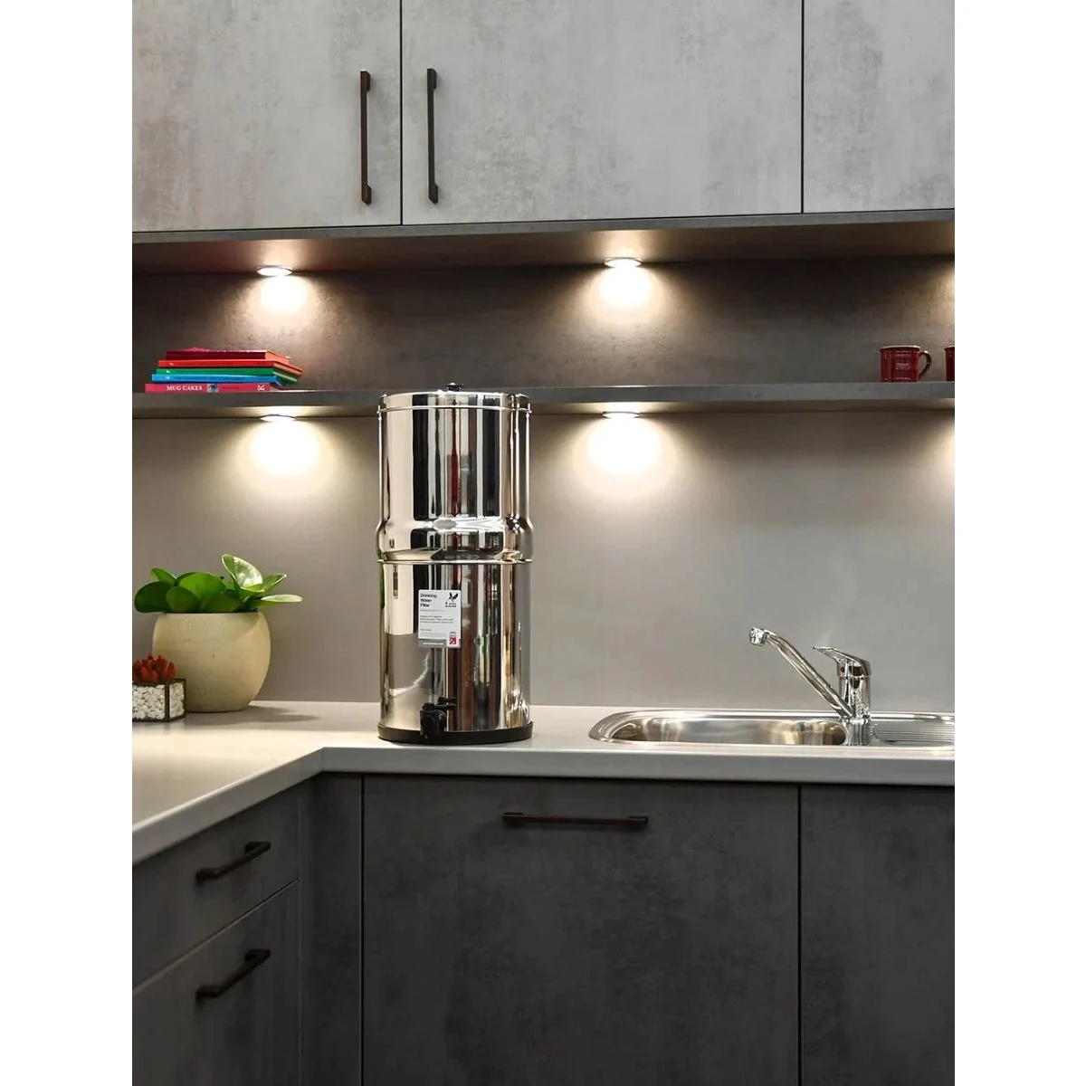 Dette systemet passer perfekt på hytta eller i campingvogna. Sunwind Gravity er et gravitasjonsfilter der du enkelt fyller vann i det øverste kammeret, og lar gravitasjonen gjøre resten av jobben. Via tappekranen i bunnen av systemet kan du få opp til 40 liter drikkevann per døgn. Systemet er svært enkelt å montere og å bruke. Obs, filterstavene tåler ikke frost.