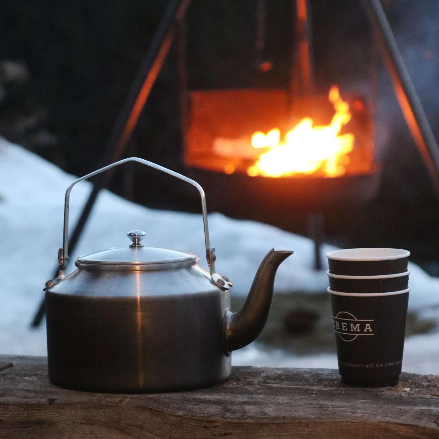 Håndtaket er utformet slik at kaffekjelen kan henge over bålet eller bålpannen.