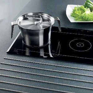 En dieselkoketopp helt i toppklasse. På arbeidsflatenivå er den eneste synlige delen den skråpolerte keramiske toppen av høy kvalitet. Koketoppen gir like mye varme som en gasskoketopp, men er betraktelig sikrere. Keramikktoppen er også lett å holde ren. Koketoppen har et varsellys for og minne deg om at platen er varm.