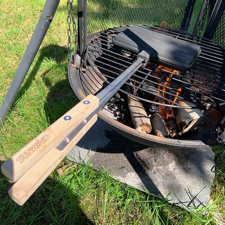 Ostesmørbrødjernet Niste i solid støpejern holder lenge på varmen, og har et ekstra langt håndtak i stål og tre, perfekt for bruk over bålet og bålpannen.
