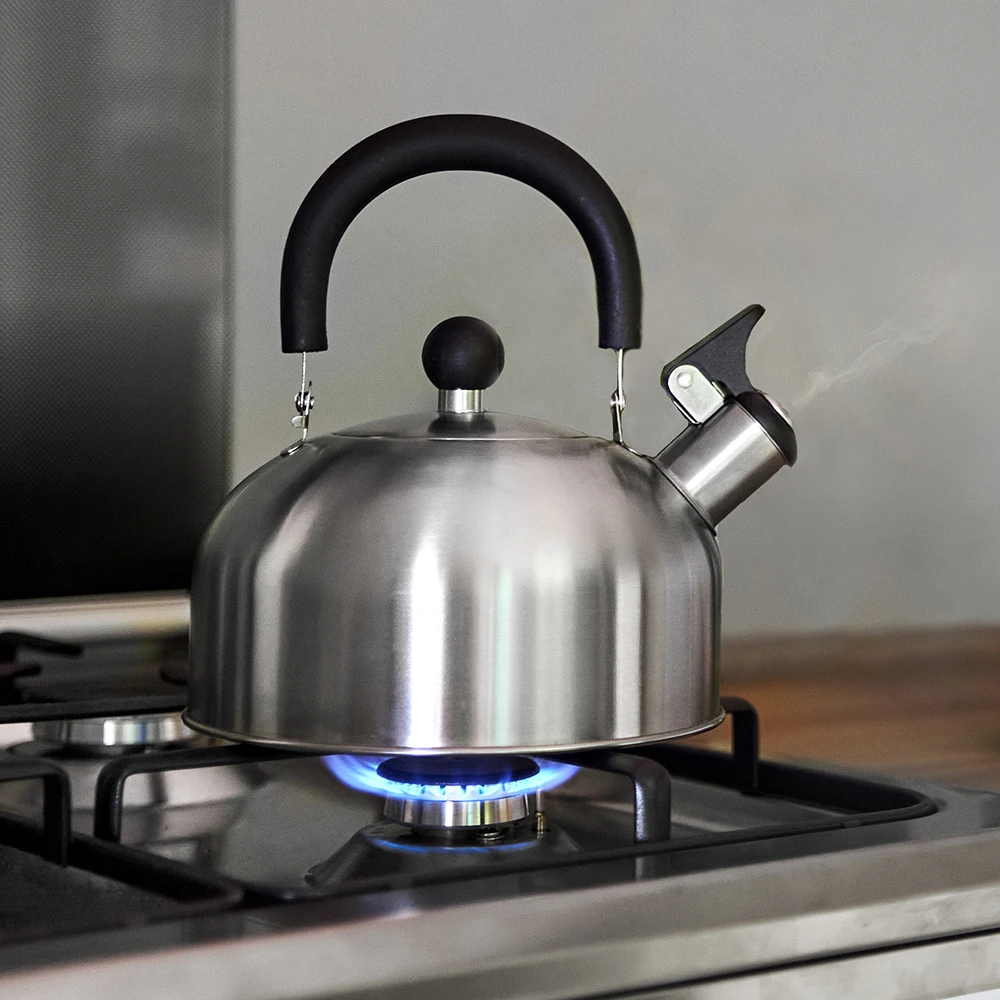 Whistle er en plystrekjele i rustfritt stål som plystrer når vannet koker, perfekt for kaffe eller te!