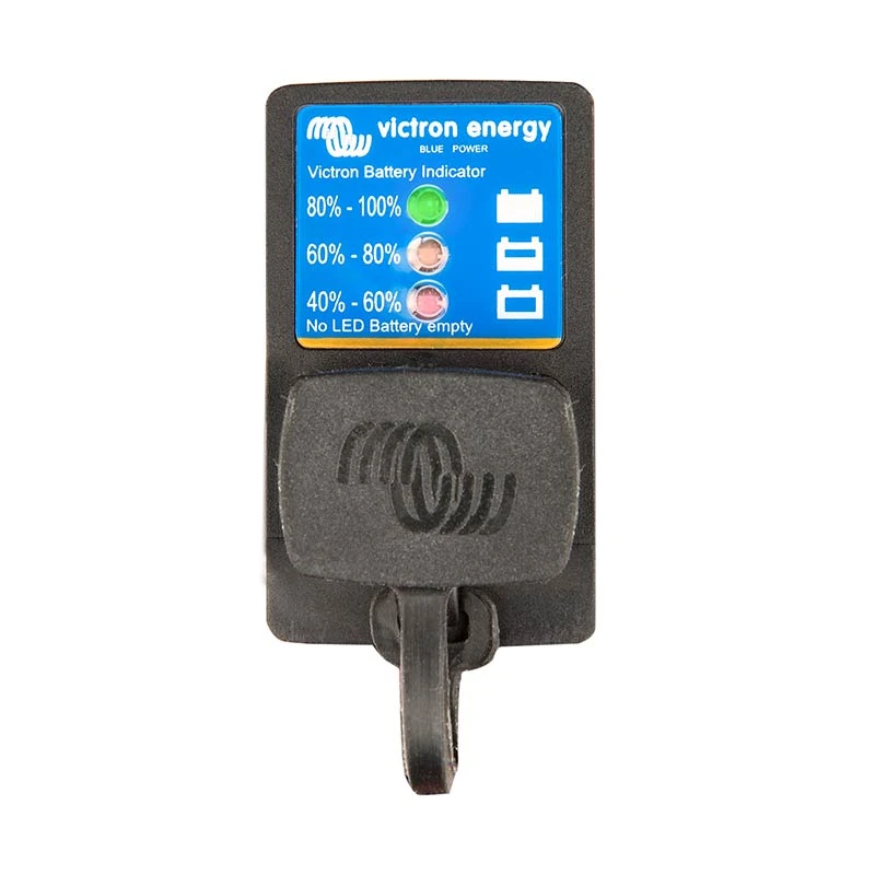 Batteriindikatorpanel som viser batteristatus. Panelet er tilbehør for Blue Smart og Blue Power IP65 ladere. Den passer bare til 12V blybatterier (flooded, GEL, AGM).