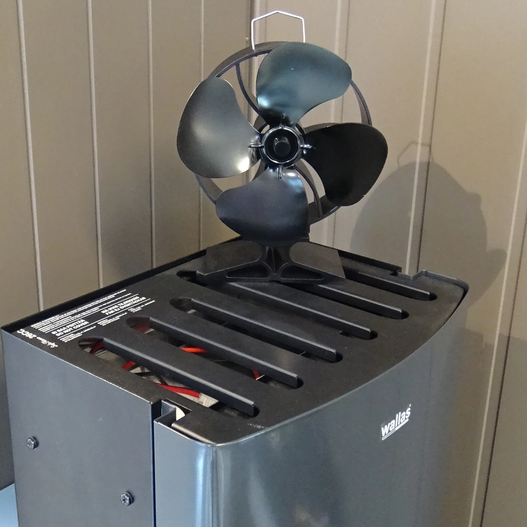 Har du en ovn, peis eller Wallas er Neat 864 det perfekte tilleggsutstyret. Den varmedrevne viften sørger for å spre varmen slik at hele hytta raskest mulig blir oppvarmet. Viften har 4 vifteblader. Viften krever en starttemperatur på minimum ca. 65 grader, og har da en oppstartstid fra ca. 30 sek. Maks. temperatur for drift av viften er 340ºC.