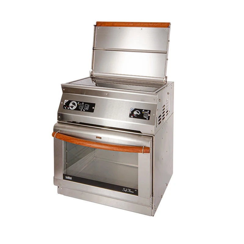 En komplett pakke bestående av stekeovn 86 D, koketopp Wallas 85 DP og varmeviftelokk. Alle enheter er ferdig montert fra fabrikk.